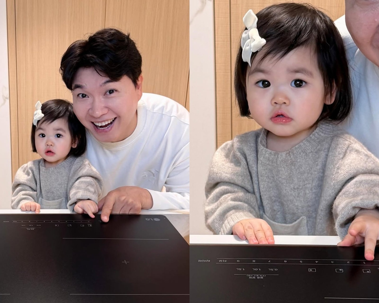 | 박수홍이 딸 재이 양과 함께 인덕션을 작동하고 있는 모습. [박수홍 SNS 갈무리] |