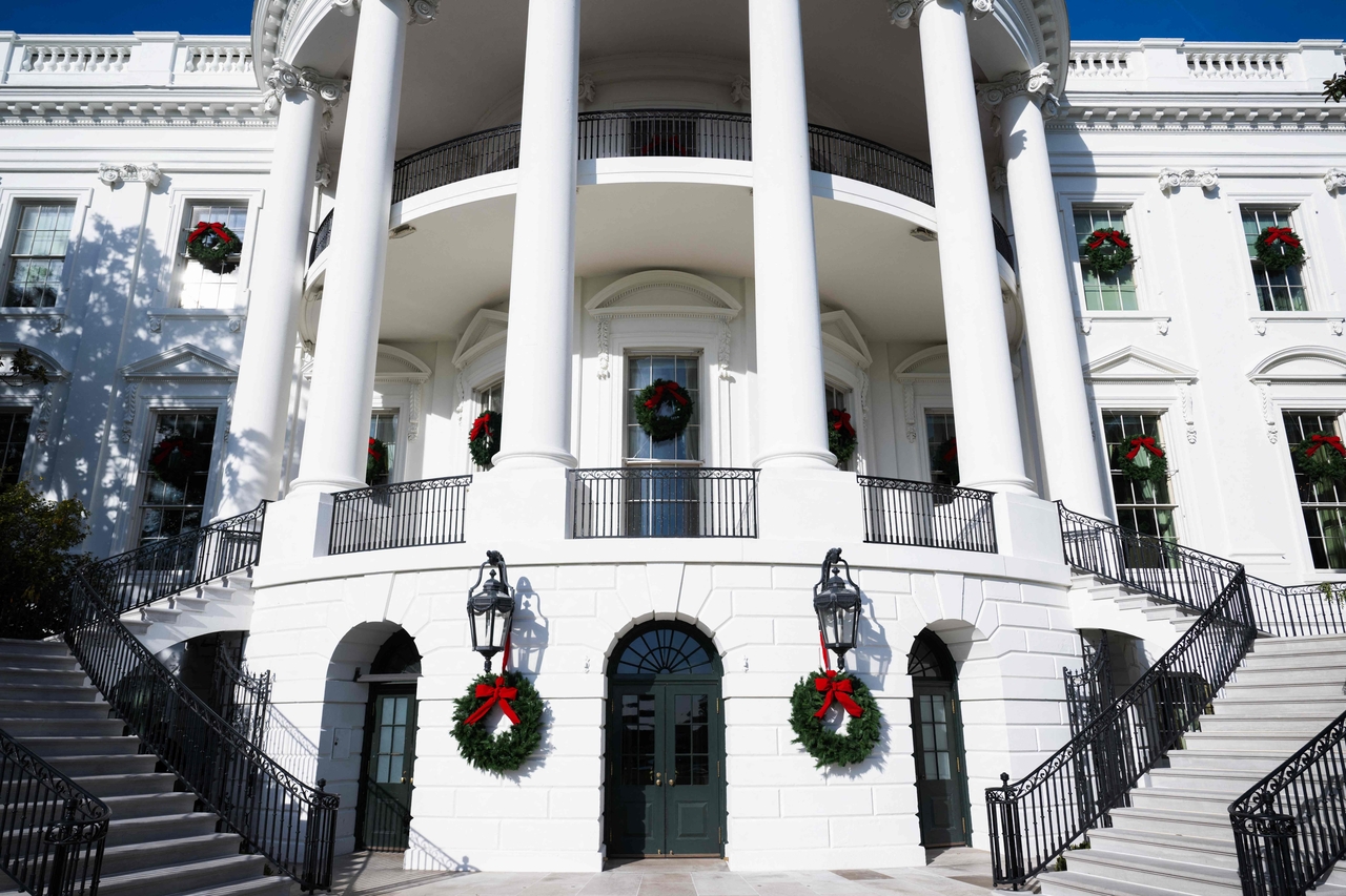 | 미국 백악관 외부에 장식된 크리스마스 리스 [AFP] |