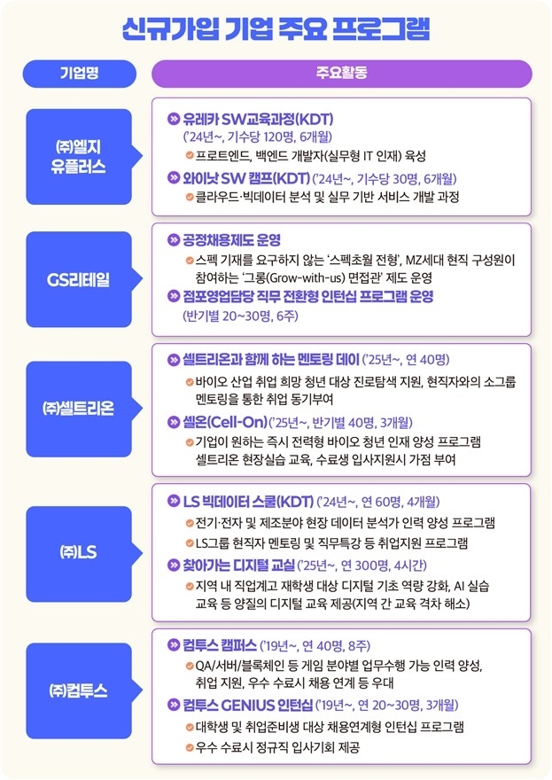 임영미 노동부 고용정책실장은 “다양한 취업 지원 활동에 앞장서 주신 가입기업에 감사드린다”며 “청년 한 명 한 명의 잠재력이 기업 성장과 산업 혁신으로 이어질 수 있도록 적극적인 참여를 부탁드린다”고 말했다.