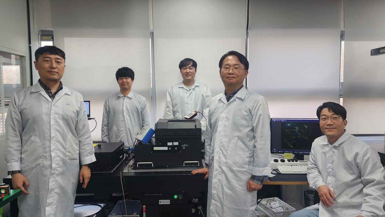 | 국내 최초로 920nm 펨토초 광섬유 레이저를 개발한 ㈜블루타일랩 연구진.[ETRI 제공] |
