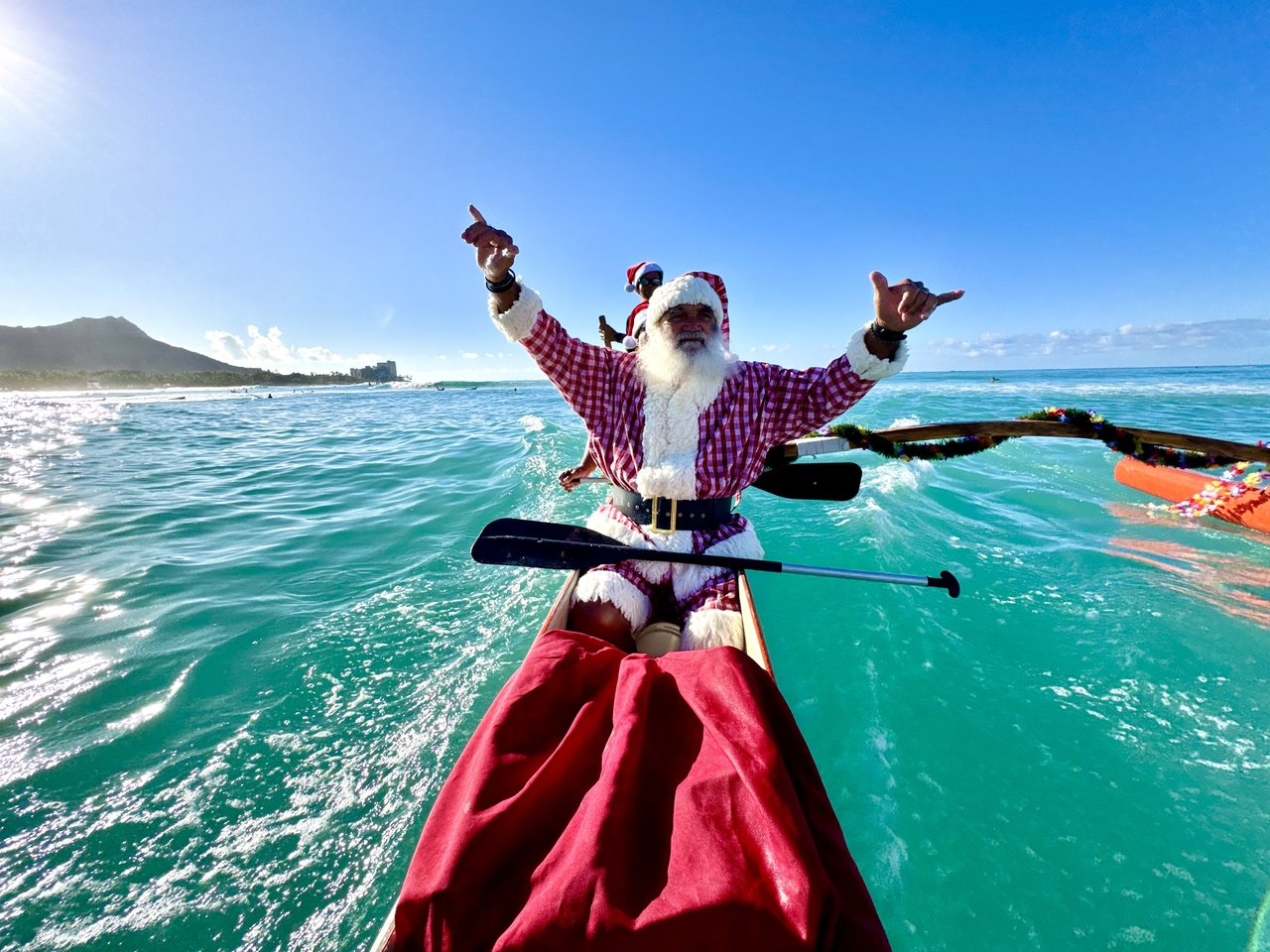 아웃리거 와이키키 비치 리조트는 오는 2025년 12월 6일, 와이키키 해변에서 20주년을 맞이한 산타 카누 행사를 진행한다.