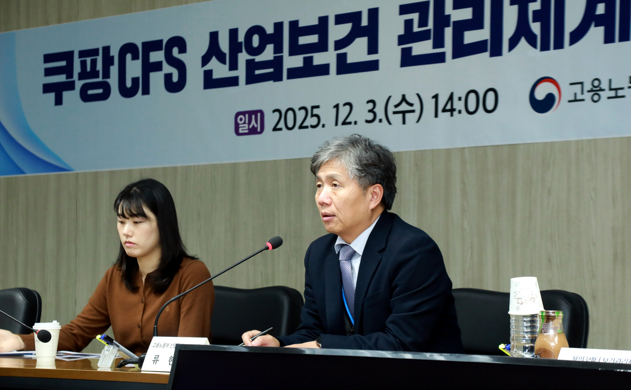 | 류현철 고용노동부 산업안전보건본부 본부장이 3일 서울 중구 한국산업안전보건공단 서울광역본부 9층 대회의실에서 서울·경기권 쿠팡물류센터의 최고안전책임자(CSO)와 보건관리자들을 만나 야간노동자 건강보호 대책과 산업보건 관리체계를 집중 점검했다. 발언하고 있는 류 본부장. [고용노동부 제공] |
