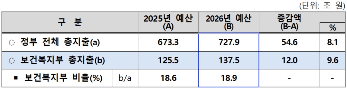 | 2026년 보건복지부 총지출 개요[보건복지부 자료] |
