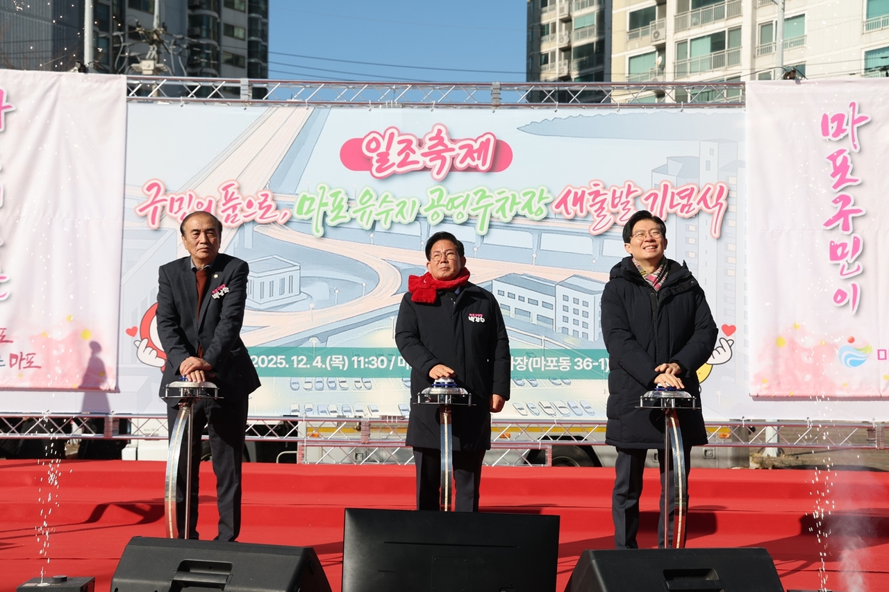 [헤럴드경제=박종일 선임기자]마포구(구청장 박강수)는 12월 4일 오전 11시 30분 마포유수지 공영주차장(마포동 36-1)에서 ‘구민의 품으로, 마포유수지 공영주차장 새출발 기념식’을 개최한다.