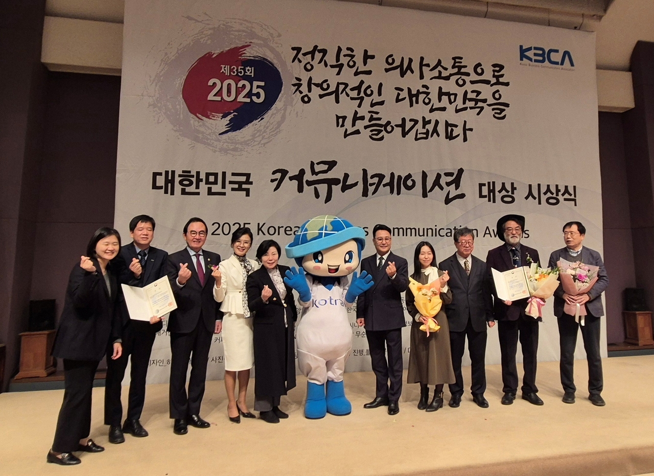 코트라는 지난 3일 서울 한국프레스센터에서 열린 ‘2025 대한민국 커뮤니케이션 대상’에서 수출·투자 관련 정보를 신속하게 전달하는 코트라 유튜브(KOTRA TV)가 문화체육관광부장관상을, 코트라 공식 마스코트 글로비는 한국사보협회장 최우수상을 수상했다.