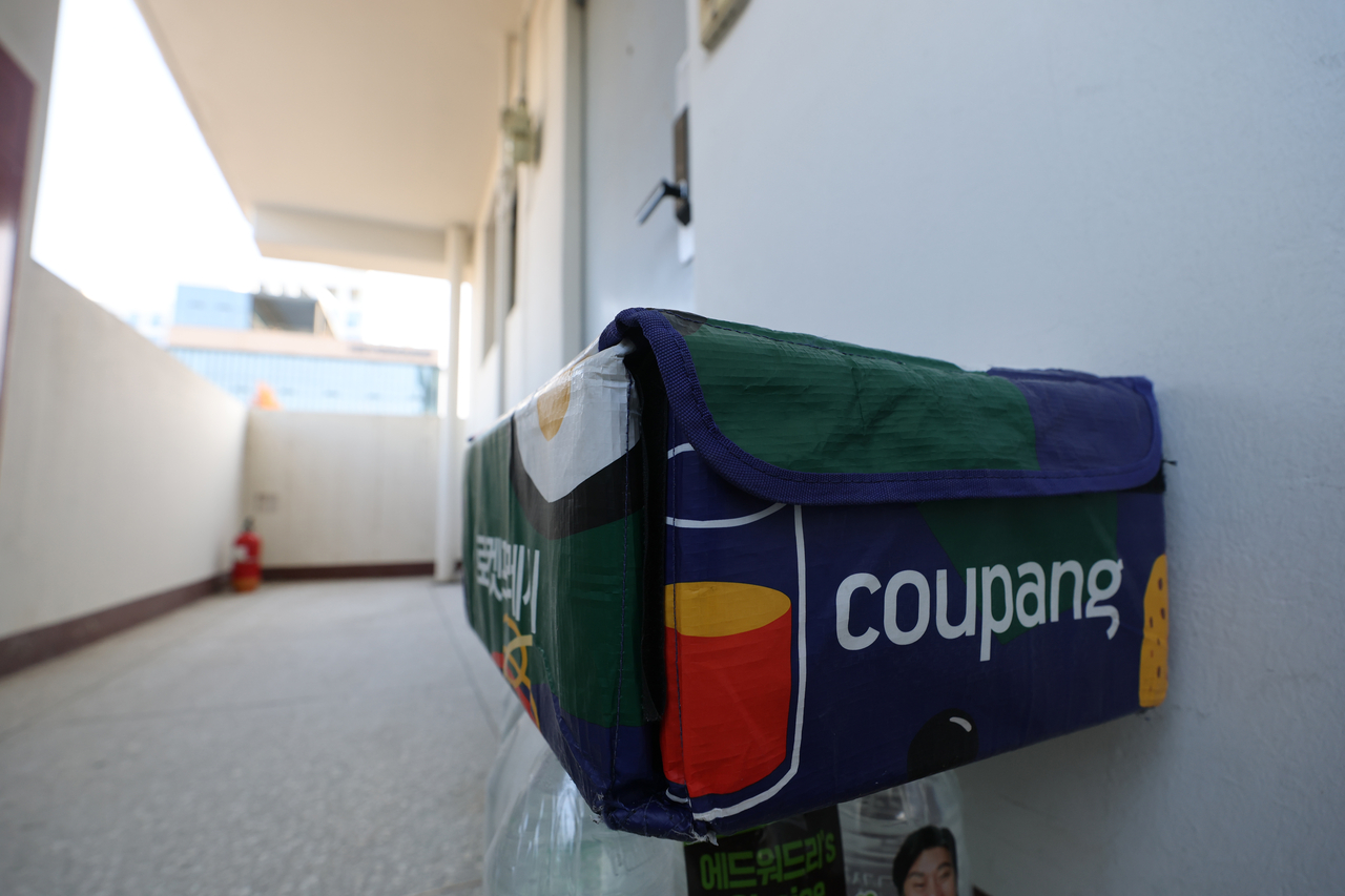 | 국내 이커머스 1위 업체 쿠팡에서 약 3천400만건에 이르는 대규모 개인정보가 유출돼 논란이 커지고 있는 가운데 지난 2일 서울 시내 한 아파트 복도에 쿠팡 로켓프레시 가방이 놓여있다. [연합] |