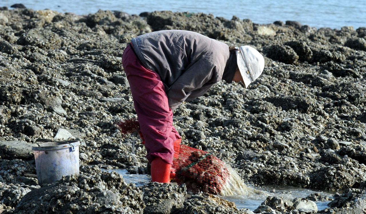 | 인천 옹진군 연평도 주민이 이른 아침부터 해안으로 나와 굴을 채취하고 있다. [헤럴드DB] |