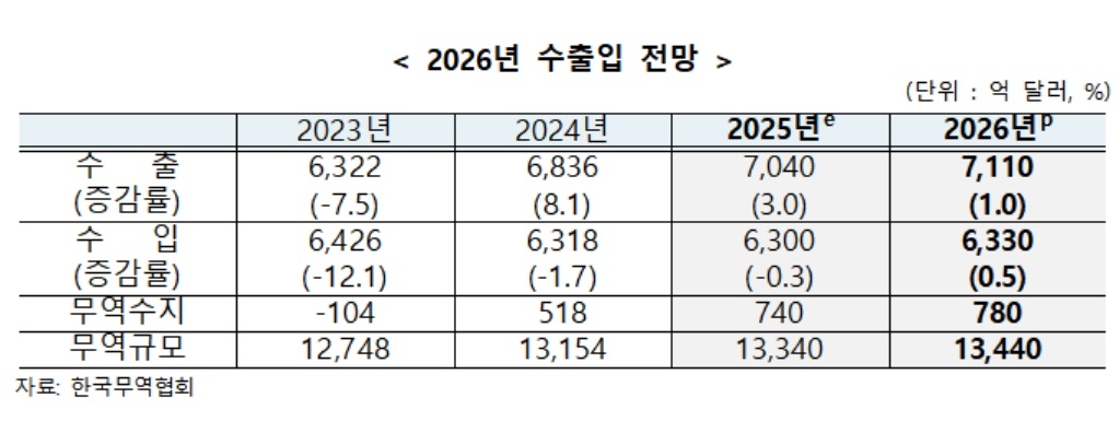 | 2026년 수출입 전망 표 [한국무역협회 제공] |