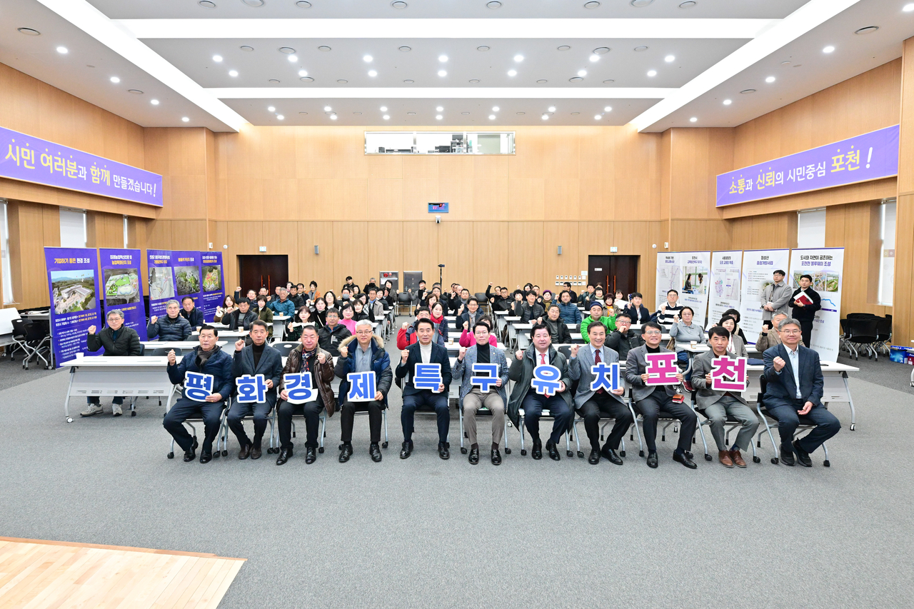 이날 설명회에는 백영현 시장을 비롯해 임종훈 포천시의회 의장, 유관기관 대표 및 읍면동 단체장 등 100여명이 참석해 포천시 평화경제특구 구상안을 공유하고 의견을 나눴다.