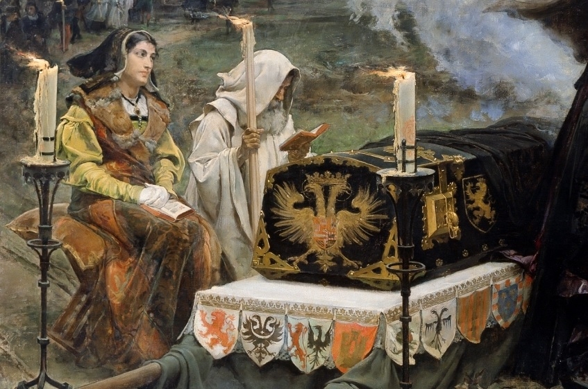 그녀는 움직였다. 무작정 관을 끌고자 했다. 관리와 시종도 어쩔 수 없이 동참했다. 이후에는 여러 전설 같은 말이 따라붙는다. 그녀가 낮 아닌 밤에만 움직이고, 잠들기 전이면 매번 관을 열고선 시신을 안았으며, 그 과정 중 다른 여자는 얼씬도 하지 못하게 했다는 식의 이야기가 그것이다. 앞서 소개한 프란시스코 프라디야 이 오르티스의 그림, <‘광녀’ 후아나>의 장면처럼 수시로 주술 의식을 벌였다는 말도 있다. 그녀는 그렇게 광녀가 되고 만 것일까. 결론부터 보면, 시신을 향한 강박과 주술에 대한 집착 등 행적 대부분은 후대에 각색(脚色)됐을 가능성이 크다. 후아나 1세에겐 분명 광증처럼 보이는 건 있었다. 그런 그녀가 아집을 부려 관과 함께 길을 나선 일은 사실에 가까운 것으로 보인다. 다만 이마저도 ‘아주 짧은’ 기간이었을 뿐, 북쪽에서 머나먼 남쪽 길 끝까지 가로지르는 일은 없었다는 게 학계 중론이다.