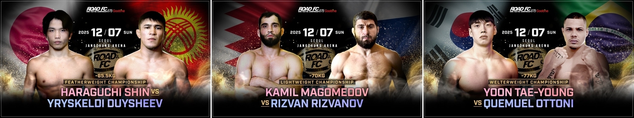 라이트급에서는 글로벌 토너먼트 우승자 카밀 마고메도프(33·KHK MMA팀)가 러시아 MFP 챔피언 리즈반 리즈바노프(31·MFP)를 상대로 1차 방어전에 나선다. 상대가 막강한 포스의 파이터라 방어 성공에 관심이 모아지고 있다.