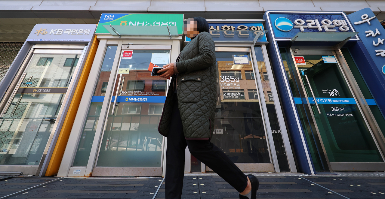 | 주요 금융지주 산하 은행들이 서울 시내에 설치한 ATM기기 앞으로 한 시민이 걸어가고 있다. 사진은 기사와 무관 [연합] |