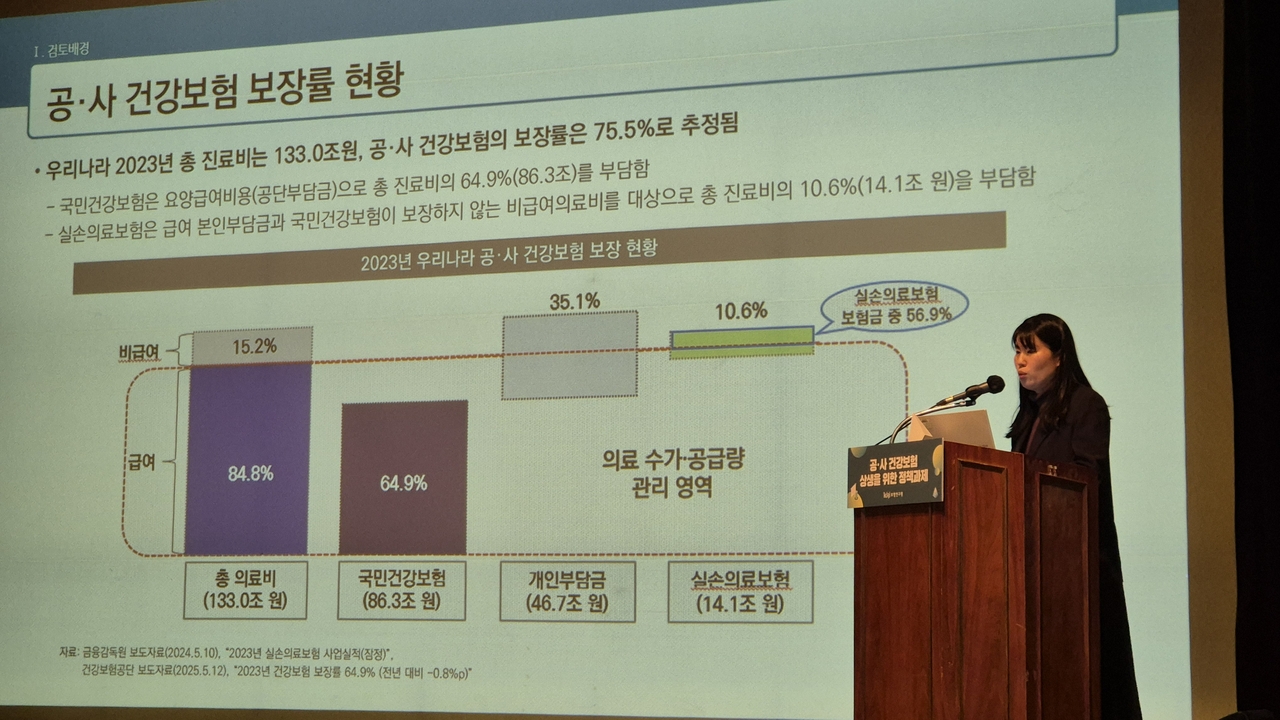 이에 전문가들은 공·사 건강보험의 지속가능성을 위해 종합적인 제도 개선이 필요하다고 입을 모았다. 구체적으로 ▷의료기술 재평가를 통한 비급여 정보 비대칭 완화 ▷관리급여 제도 활성화 ▷비급여관리법 제정·가격 규제 ▷공·사보험 정보연계를 위한 법적 근거 마련 ▷실손 요율 정상화 등을 과제로 꼽았다. 특히 실손보험료 조정한도 규제(연간 25% 내외)의 적정성을 재검토해야 한다는 목소리도 나왔다.