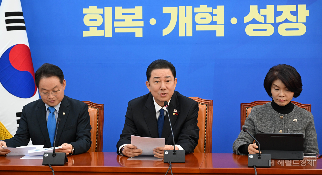 [헤럴드pic] 발언하는 김병기 더불어민주당 원내대표 글꼴 선택 본문 텍스트 크게본문 텍스트 작게 인쇄 [헤럴드경제=이상섭 기자] 김병기 더불어민주당 원내대표가 9일 오전 서울 여의도 국회에서 열린 원내대책회의에서 모두발언하고 있다.