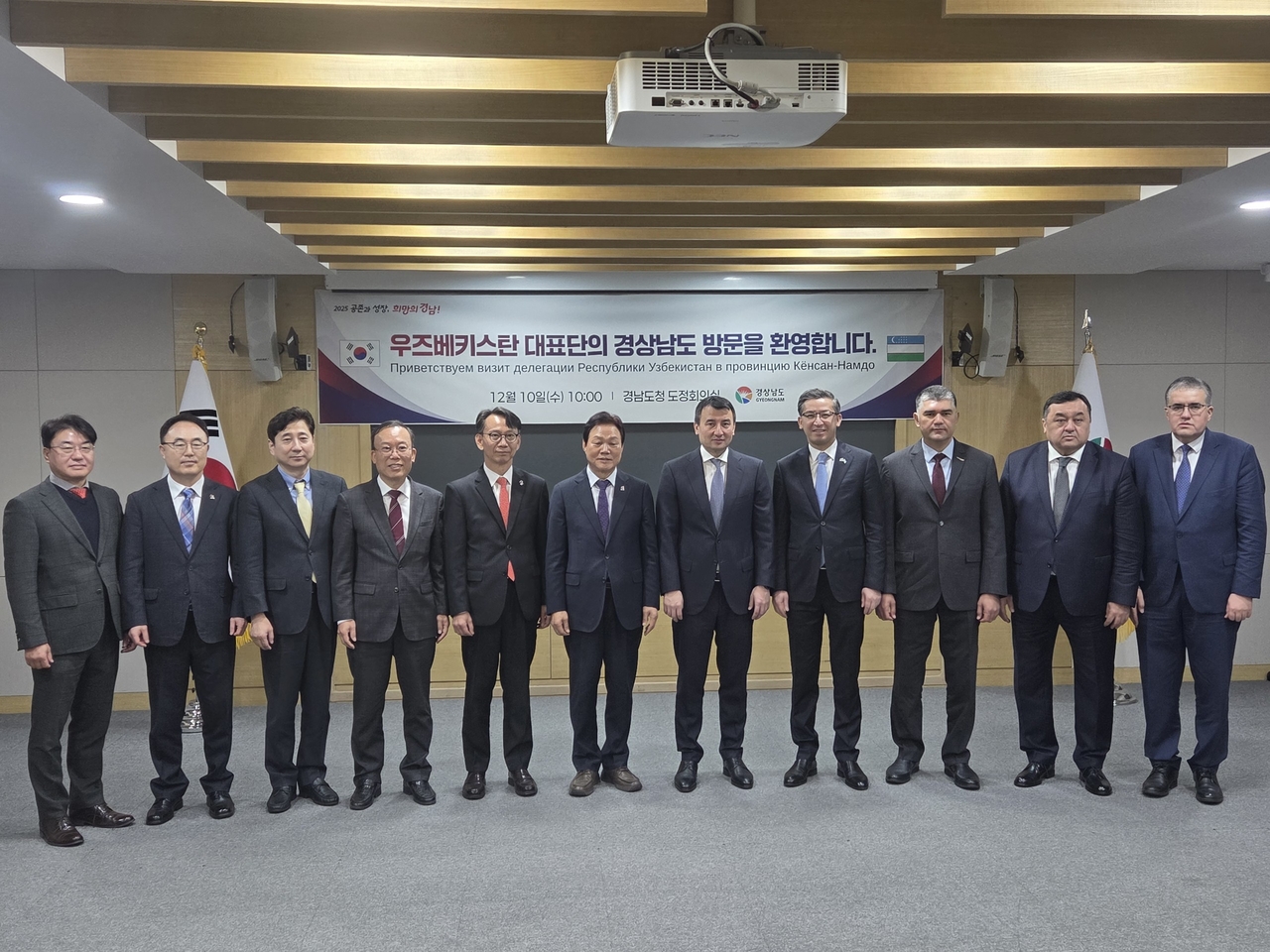 경남도는 10일 잠시드 압두하키모비치 호자예프 경제부총리를 비롯한 우즈베키스탄 고위급 대표단이 경남도를 공식 방문했다고 밝혔다. 경남도를 첫 공식 방문하는 호자예프 경제부총리 등 대표단은 제조산업 현장을 직접 확인하고 협력 분야를 세부적으로 논의하기 위한 실무 방문 성격이다.