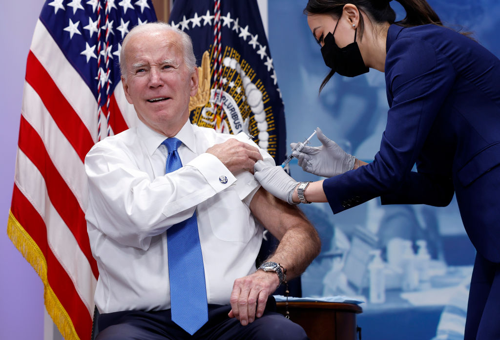 | 지난 2022년 10월 당시 미국 대통령이었던 조 바이든이 백악관 내 사우스 코트 강당에서 코로나19 추가 접종을 받고 있는 모습. 트럼프 2기 행정부에서 백신 회의론자인 로버트 케네디 주니어가 보건복지부 장관을 맡은 이후, 미국 식품의약국(FDA)이 코로나19 백신과 성인 사망 사례와의 연관성 조사에 나섰다.[게티이미지] |