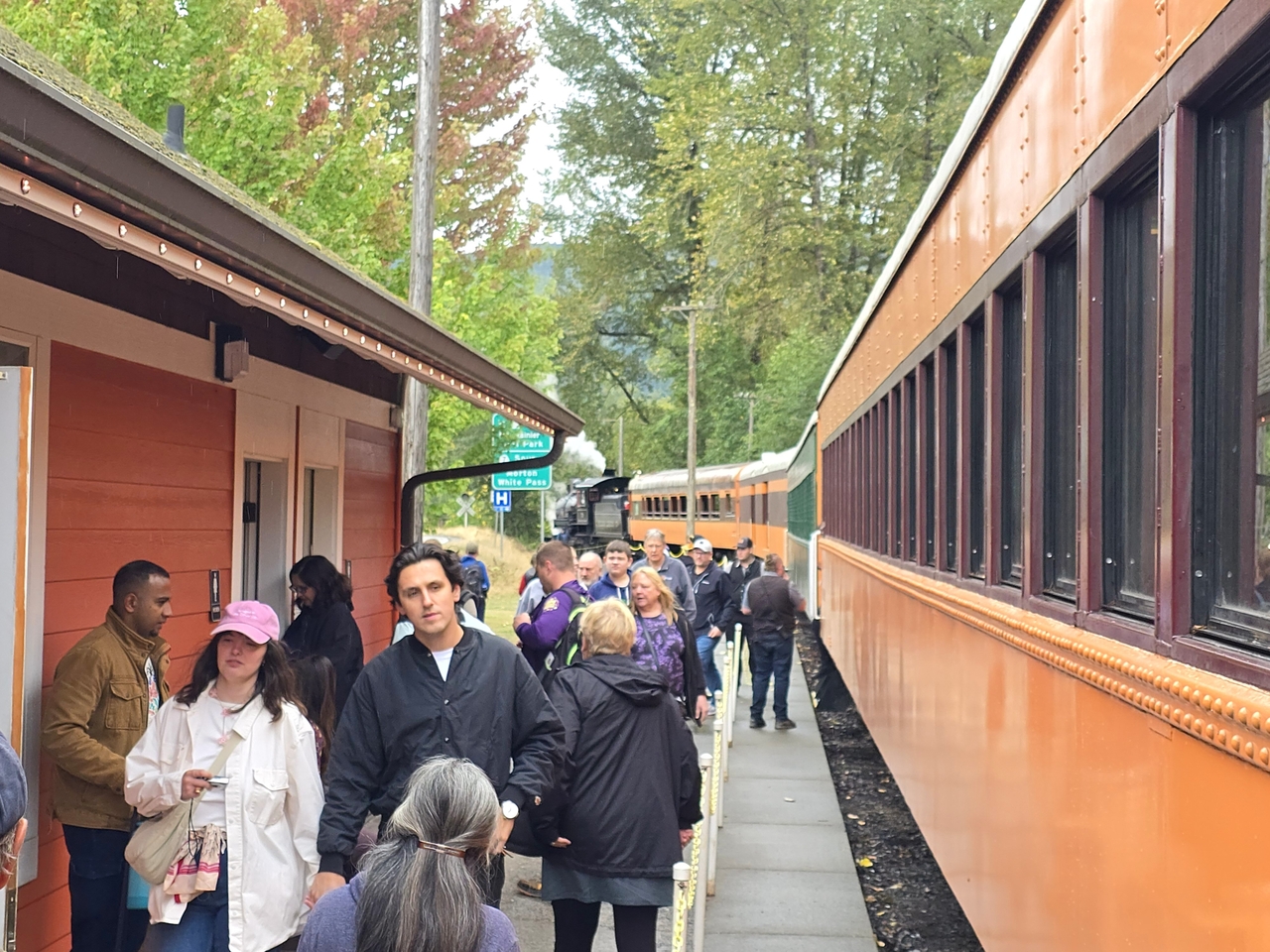| 케리공원에서 스페이스니들과 함께 보이는 레이니어산의 단구간 증기열차 투어 |