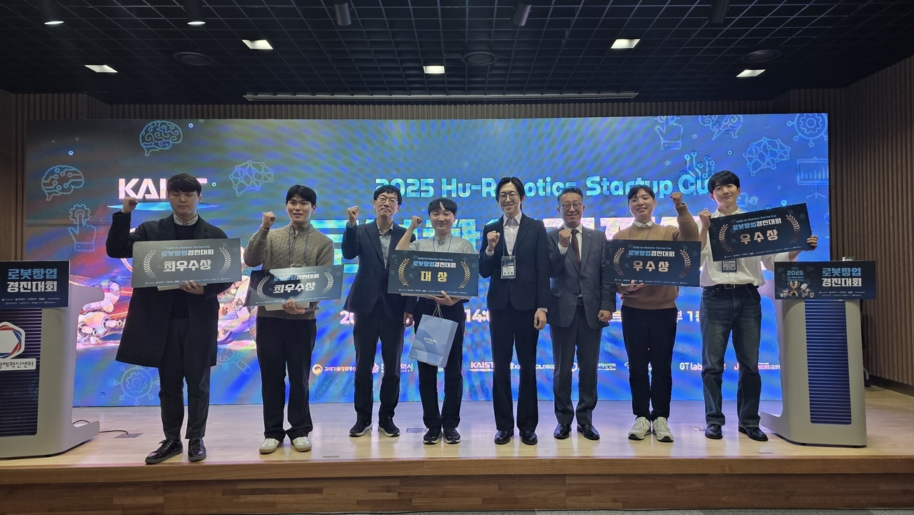| ‘2025 KAIST 휴로보틱스 스타트업컵’ 수상자들이 기념촬영을 하고 있다.[KAIST 제공] |