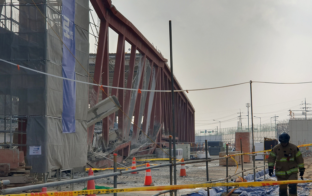 | [11일 오후 광주 서구 치평동 광주대표도서관 건설 현장에서 콘크리트 타설 작업 중 구조물 붕괴 사고가 나 소방 당국이 매몰된 것으로 추정되는 작업자 4명을 구조 중이다. [뉴시스] |