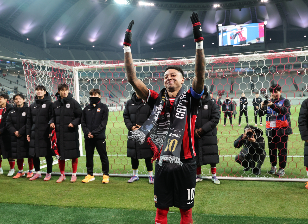 | FC서울 제시 린가드가 10일 서울 마포구 서울월드컵경기장에서 열린 2025-2026 아시아축구연맹(AFC) 챔피언스리그 엘리트(ACLE) 리그 스테이지 6차전 멜버른 시티(호주)와의 경기가 끝난 뒤 관중석을 향해 인사하고 있다. [연합] |