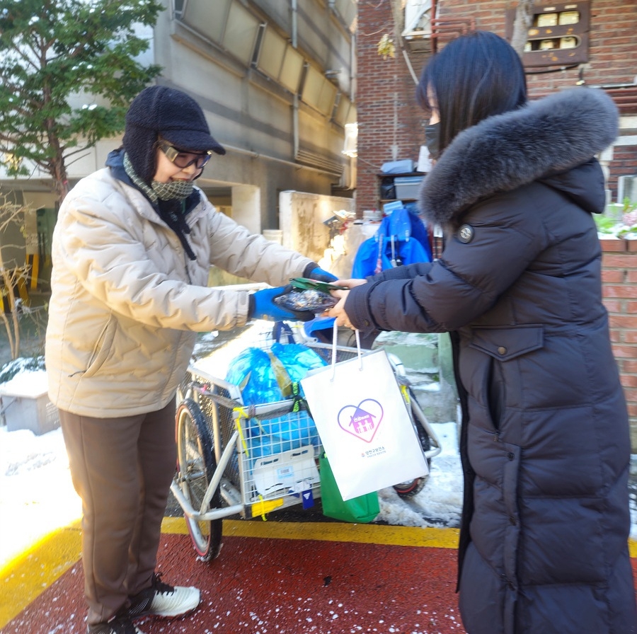 | 폐지수집 어르신에게 귀마개, 넥워머, 핫팩 등 방한물품 지원 |