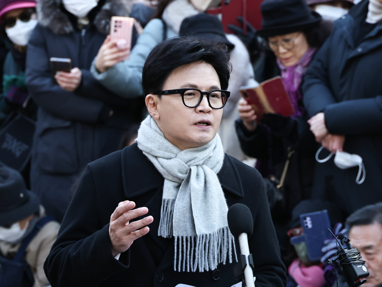 | 국민의힘 한동훈 전 대표가 3일 서울 여의도 국회도서관 앞 쪽문에서 12ㆍ3 비상계엄 1주년 관련 기자회견을 하고 있다. [연합] |