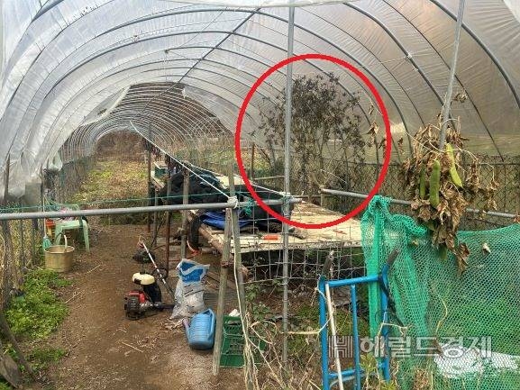 비닐하우스는 두 지자체의 경계 부근 산속에 위치하고 있다. 시내에서 약 1시간 20분 정도 걸리는 깊은 곳이다. 밖에서 언뜻 보면 일반 농작물과 쉽게 구분하기 어렵게 꾸며놨다.