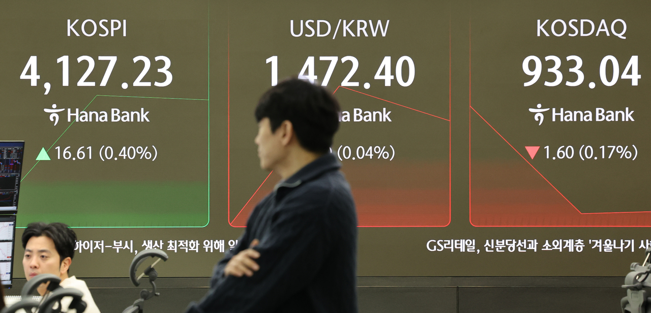 12일 한국거래소에 따르면 이날 오전 9시 27분 현재 코스피는 전 거래일 대비 31.62포인트(0.77%) 오른 4142.24에 거래 중이다. 코스피는 전장 대비 13.21포인트(0.32%) 상승한 4123.83으로 출발해 오름폭을 키우고 있다.