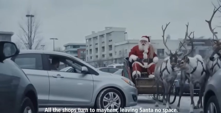광고는 크리스마스 시즌에 벌어질 수 있는 각종 사고와 혼란을 AI 기반 영상으로 묘사했다.