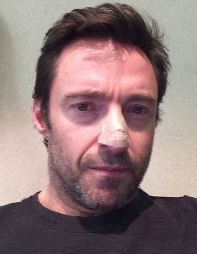 | 휴 잭맨이 코에 피부암 수술을 받은 모습. [SNS 갈무리] |