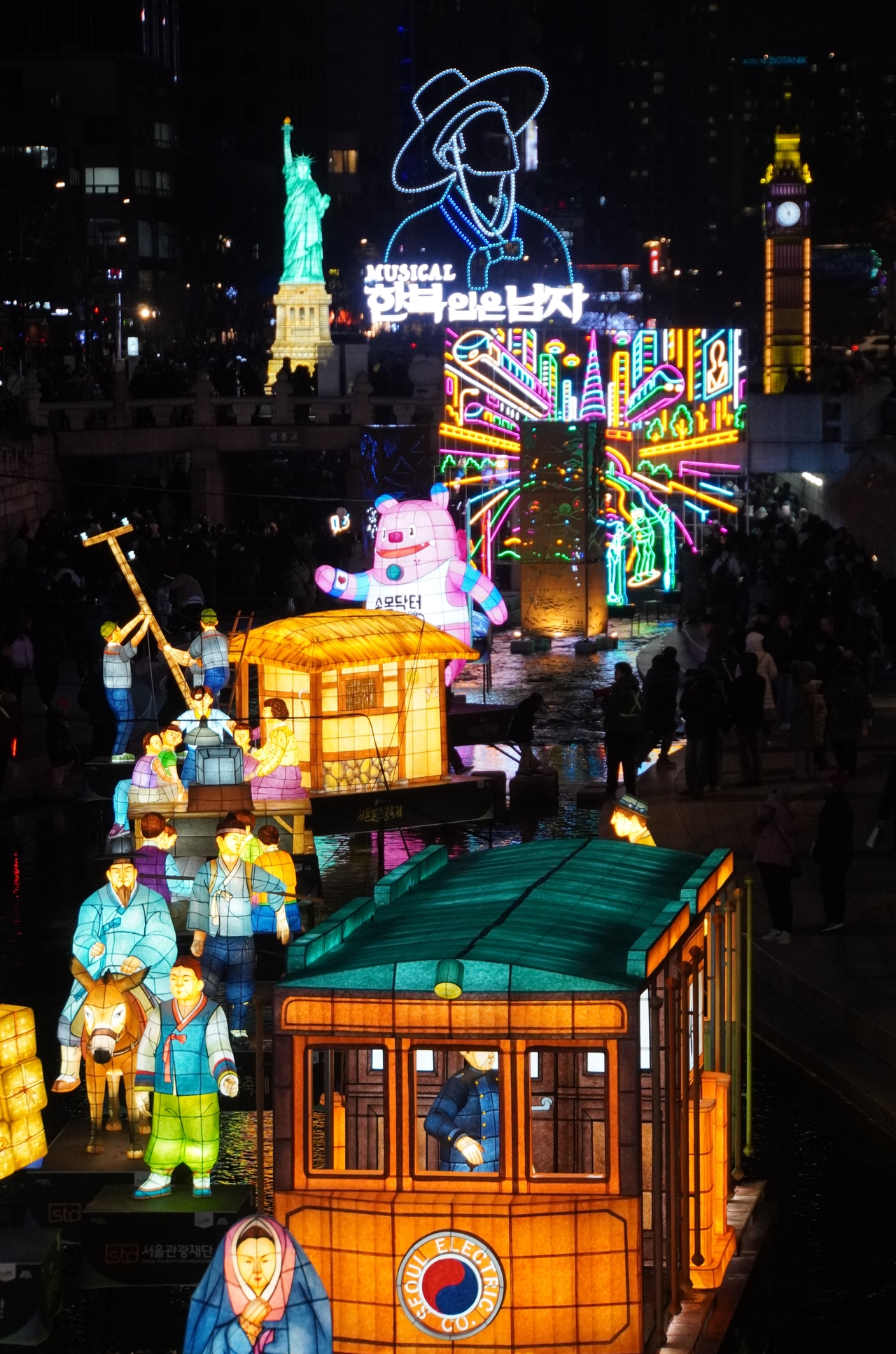이번 축제의 백미는 한국 전통미와 현대 LED 기술의 만남이다. 청계천 모전교에 설치된 ‘시등의 순간’은 경복궁 건청궁의 첫 전등을 모티브로 한 작품으로, 한지 등(燈)과 3면 LED가 어우러져 암흑에서 빛으로의 전환을 극적으로 표현했다.