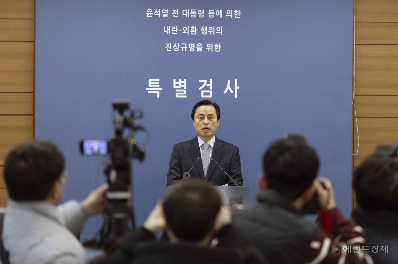 [헤럴드pic] 수사결과 발표하는 조은석 특별검사 글꼴 선택 본문 텍스트 크게본문 텍스트 작게 인쇄 [헤럴드경제=임세준 기자] 조은석 특별검사가 15일 오전 서울 서초구 서울고등검찰 브리핑룸에서 윤석열 전 대통령의 12·3 비상계엄 관련 내란·외환 사건 수사 결과를 발표하고 있다.