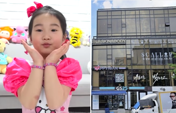| 보람이(왼쪽)와 보람패밀리가 보유 중인 서울 강남구 청담동 빌딩. [보람튜브 브이로그, SNS 갈무리] |