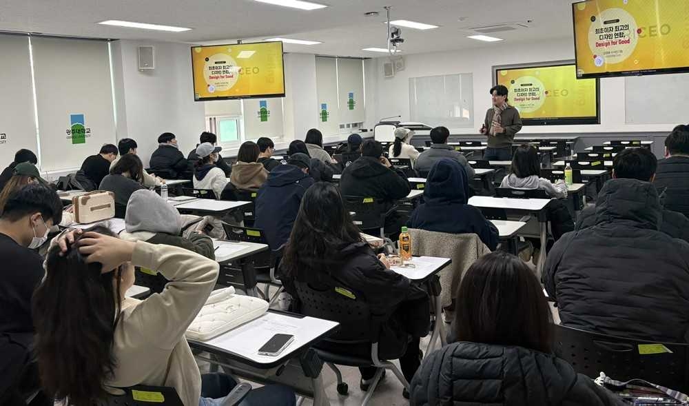 안 교수는 ‘글로벌 SDGs 실천 혁신기업 사례’를 주제로 창업의 본질을 새로운 관점에서 정의하며 학생들의 인식을 넓혔다. 안 교수는 “창업이란 곧 사람을 모으는 활동이며, 성공한 사람은 사람을 많이 모은 사람이다”라며 “학생들이 전공 분야에서 습득하는 지식과 기술은 사람을 모으는 콘텐츠로서의 가치를 지닌다”고 말했다.