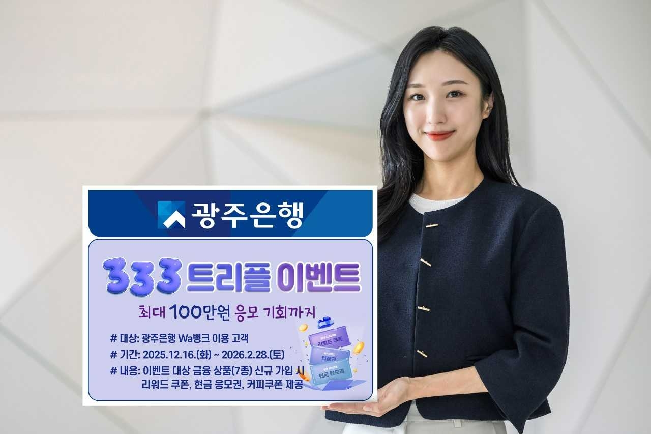 [헤럴드경제(광주)=서인주 기자] 광주은행(은행장 고병일)은 16일부터 2026년 2월 28일까지 광주은행 Wa뱅크 이용 고객을 대상으로 ‘333 트리플 이벤트’를 진행한다.