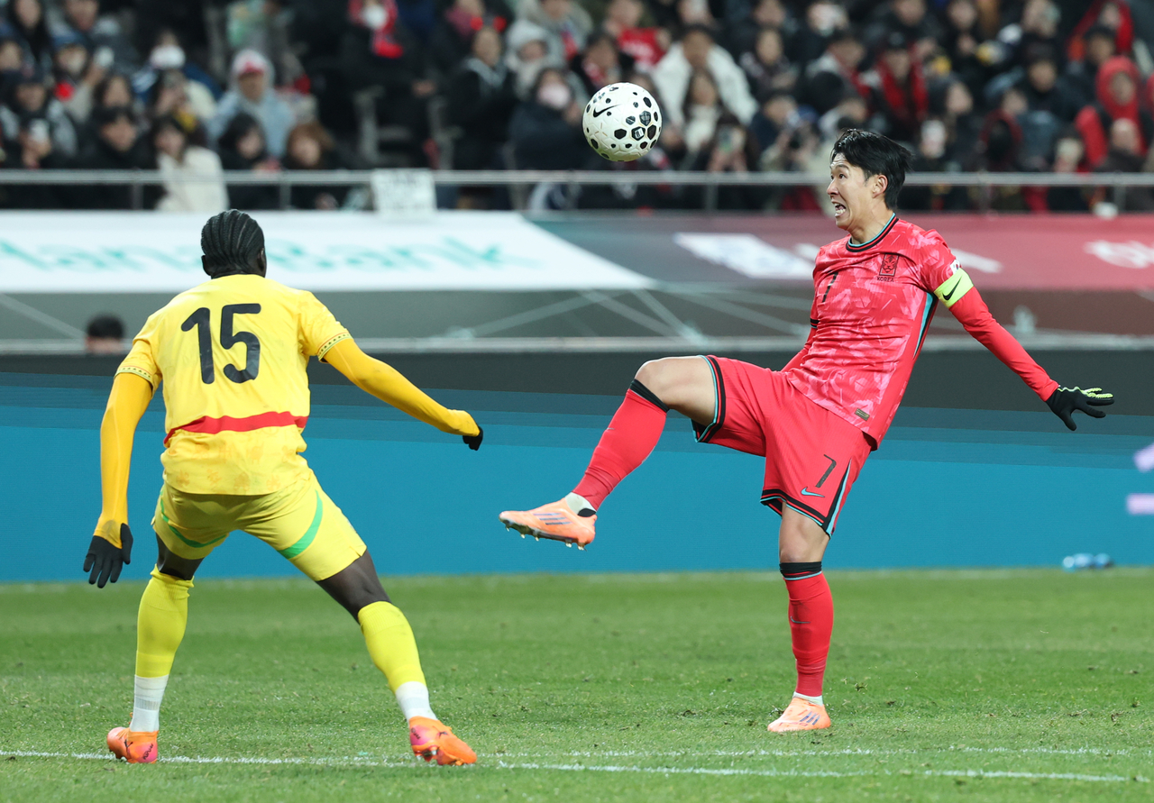 | 가나와 국내 평가전에서 볼을 트래핑 하는 캡틴 손흥민 [연합] |