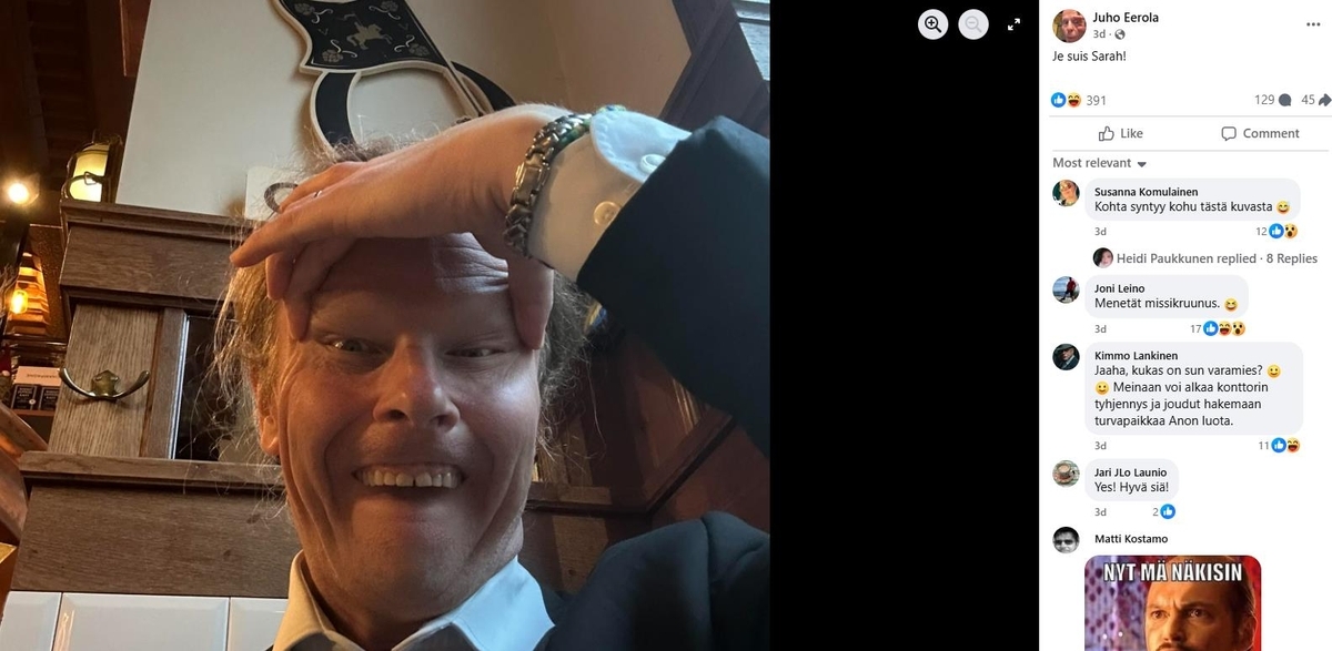 | 미스 핀란드 옹호하는 핀란드당 의원 [유호 에롤라 핀란드당 의원 페이스북 캡처] |
