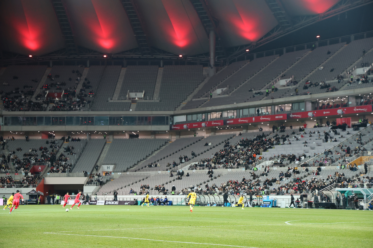 서울월드컵경기장에서 열린 A매치 관중이 3만 명을 채우지 못한 건 2015년 10월 13일 자메이카전(2만8105명) 이후 10년 만이었다.