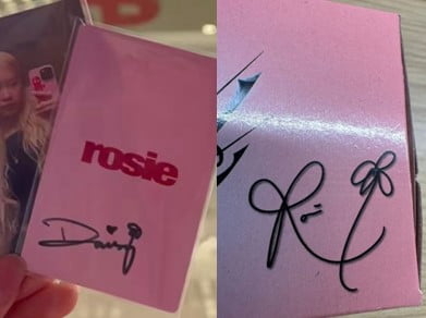 이후 데이지는 팬들과 사진을 찍고 로제의 공식 굿즈에 직접 사인까지 했다.