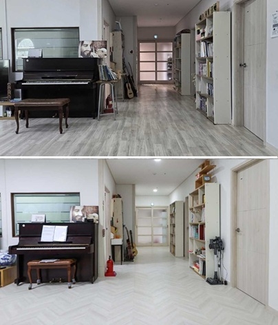 | 경기도 여주 그룹홈 ‘좋은나무와 열매’의 리모델링공사 전(위)과 후 모습. [LX하우시스 제공] |