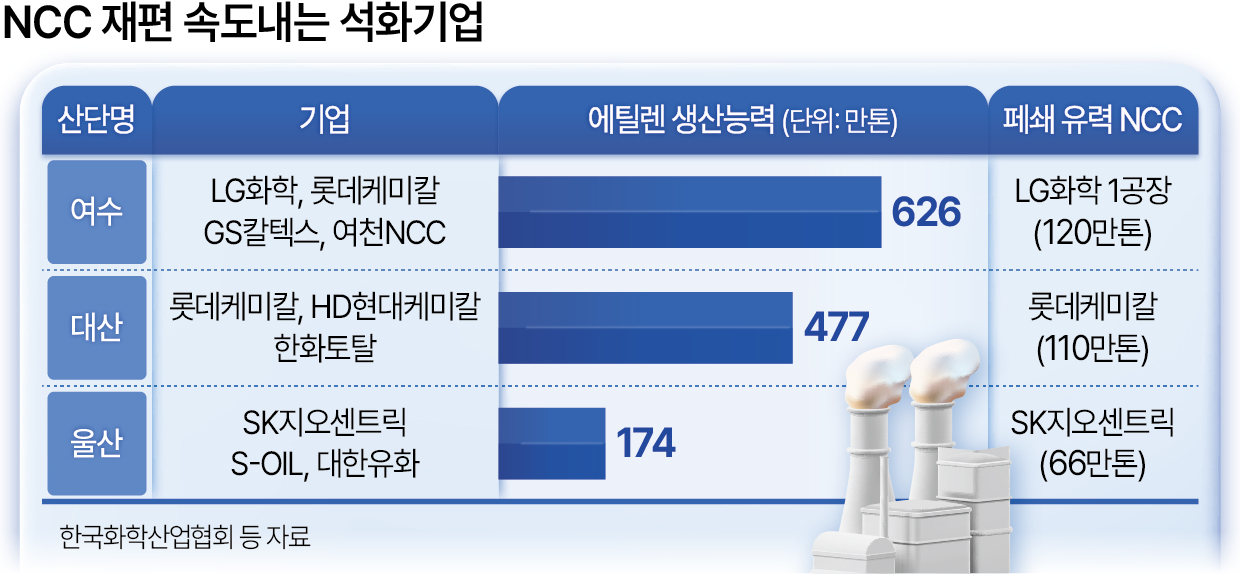 정부는 지난 8월 기업들에 연내 270만~370만톤 규모의 NCC 감축안을 제출하라고 요구했다. 김정관 산업통상부 장관은 지난달 26일 “시한을 맞추지 못한 기업들은 정부 지원에서 제외되고 향후 대내외 위기에 대해 각자도생해야 할 것”이라고 경고한 바 있다.