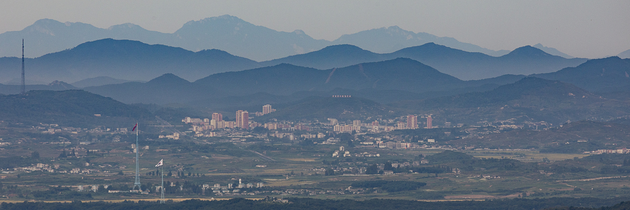 | 경기도 파주시 접경지역에서 바라본 서부전선 비무장지대(DMZ)와 개성 시내 일대가 적막한 모습을 보이고 있다. [연합] |