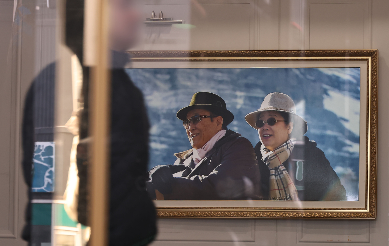 | 경찰이 정치권 인사들의 통일교 금품 수수 의혹과 관련해 첫 강제수사에 나선 15일 서울 용산구 세계평화통일가정연합 한국본부 로비에 한학자 통일교 총재(오른쪽)와 고 문선명 통일교 총재 사진이 걸려 있다. [연합] |