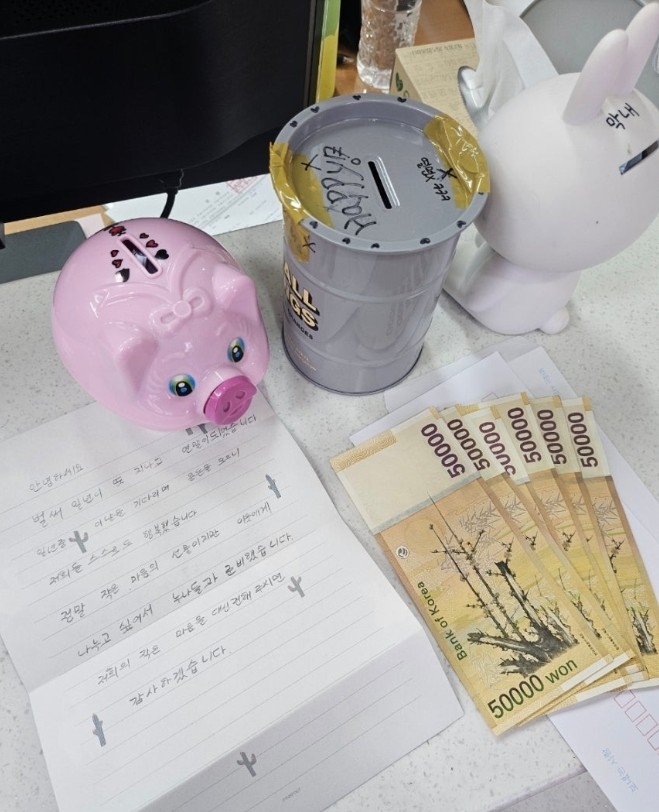 기부자가 남긴 손편지에는 “일 년 동안 이날을 기다리며 용돈을 모으니 너무 행복했다”며 “작은 선물이지만 좋은 곳에 써 주시면 감사하겠습니다”라는 글이 적혀 있었다.