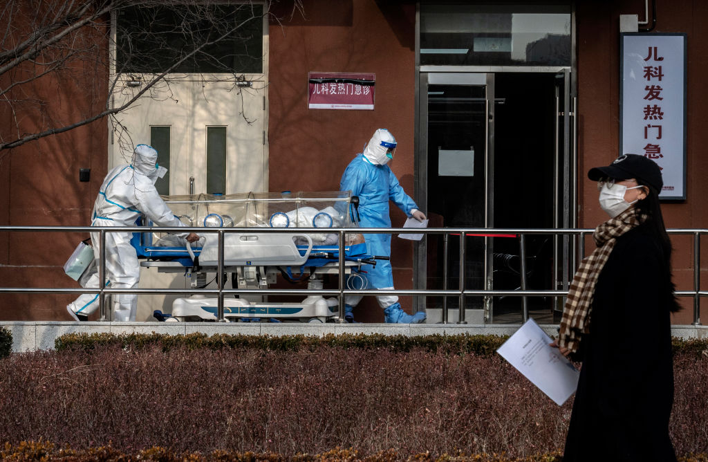 | 지난 2022년 중국 베이징에서 의료진이 들것을 밀고 발열 환자 치료소로 환자를 이동시키고 있다. [게티이미지] |