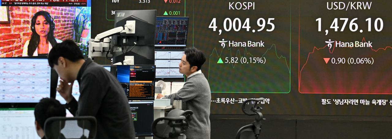 | 17일 오전 중구 하나은행 딜링룸 전광판 모습. [헤럴드DB] |