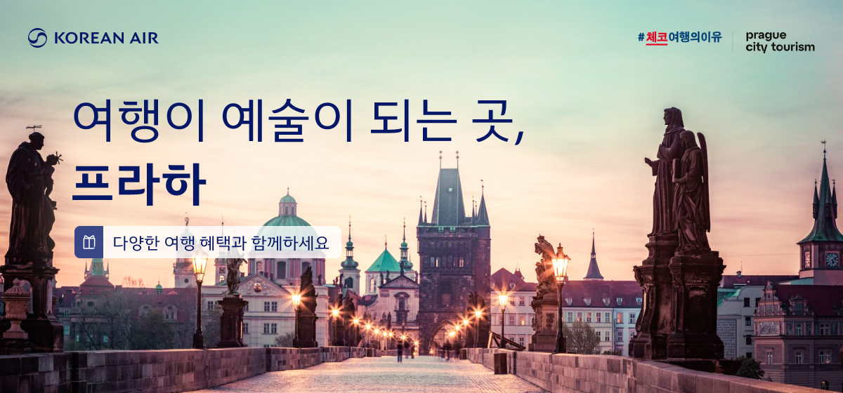 체코관광청과 프라하시 관광청은 대한항공과 협업해, 프라하 직항 노선을 활용한 공동 프로모션을 진행한다. 이번 프로모션은 내년 1월 15일까지 진행되며, 대한항공 홈페이지 및 모바일을 통해 인천 출발 프라하행 편도 및 왕복 일반석 항공권 구매 시 7% 할인 혜택이 제공된다.