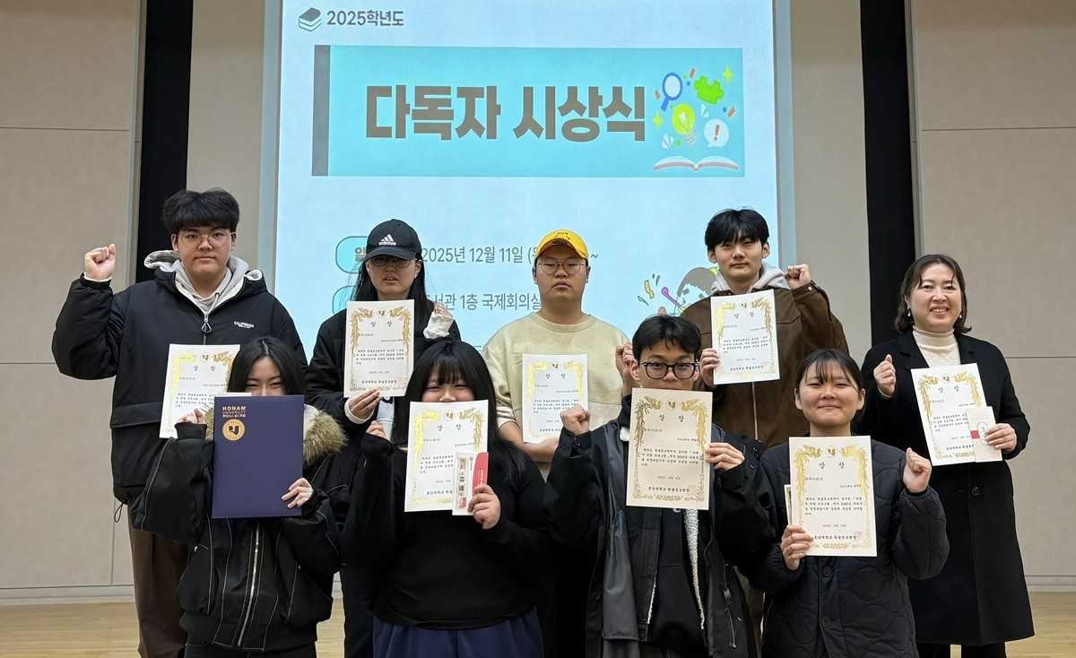 [헤럴드경제(광주)=서인주 기자] 호남대학교 학술정보원(원장 강은주)은 11일 ‘2025년 다독자 시상식’을 갖고, 올해(3월 10일~11월 28일) 도서 대출 실적이 우수한 재학생 15명에게 상장과 상품(문화상품권)을 수여했다고 18일 밝혔다.