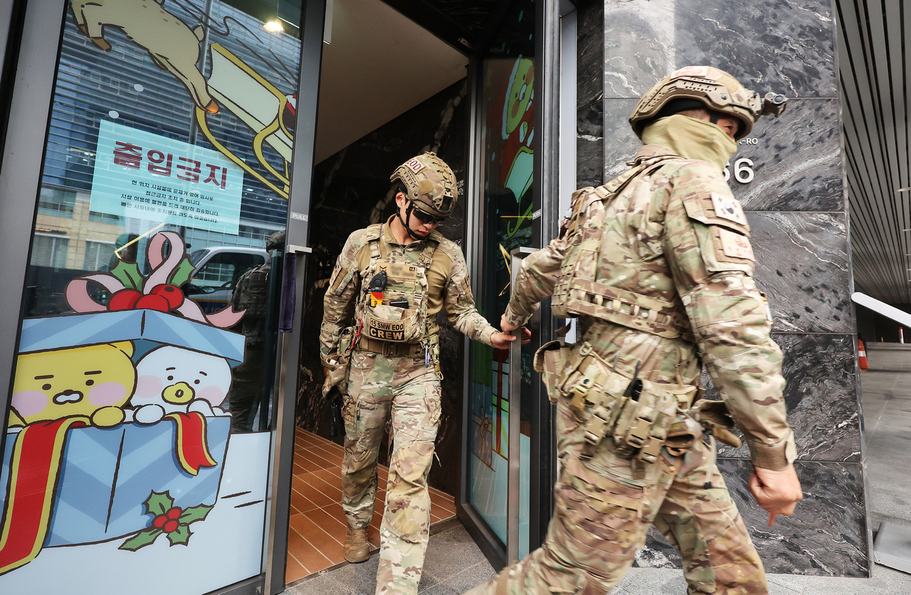| 15일 경기 성남시 분당구 카카오 판교아지트 건물에 폭파 협박이 있었다는 사측의 신고가 접수돼 경찰과 군이 수색에 나섰다. [연합] |