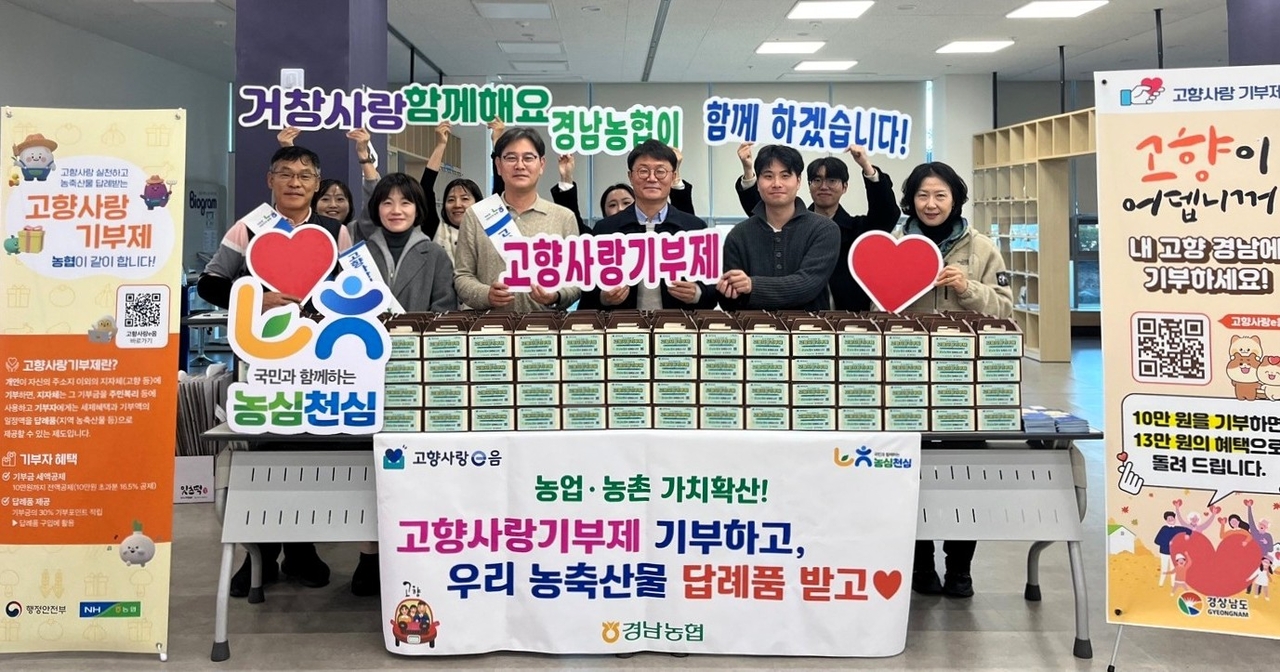 류길년 경남농협 본부장은 “고향사랑기부제는 지역에 기부를 통해 농촌에 활력을 불어넣고, 농축산물 답례품 소비로 농가 소득에도 도움이 되는 제도”라며 “연말정산 시기와 맞물려 제도가 보다 폭넓게 알려질 수 있도록 경남도와 협력해 홍보를 이어가겠다”고 말했다.